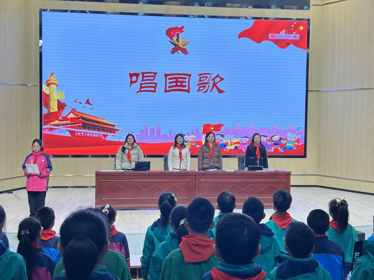 少工委副主任韩丽君依次宣布新一届学校少工委成立及名单,为学校少先队工作注入新鲜血液,搭建起更坚实的组织桥梁;全体队员高举右拳,在辅导员周芸的带领下庄严呼号:“准备着,为共产主义事业而奋斗!”“时刻准备着!”铿锵有力的呼号响彻校园,成为少先队员们砥砺前行的坚定信念。